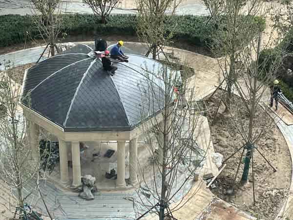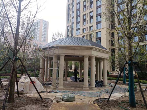 太原華潤昆侖御門頭干掛石材鐵藝大門